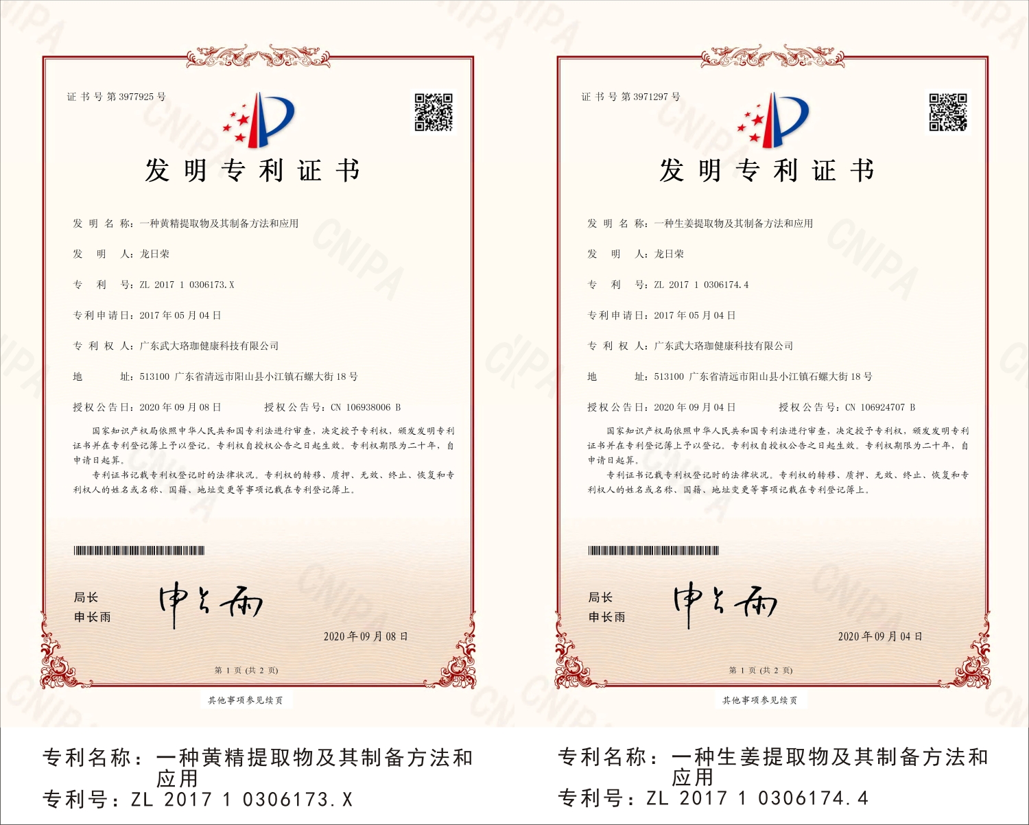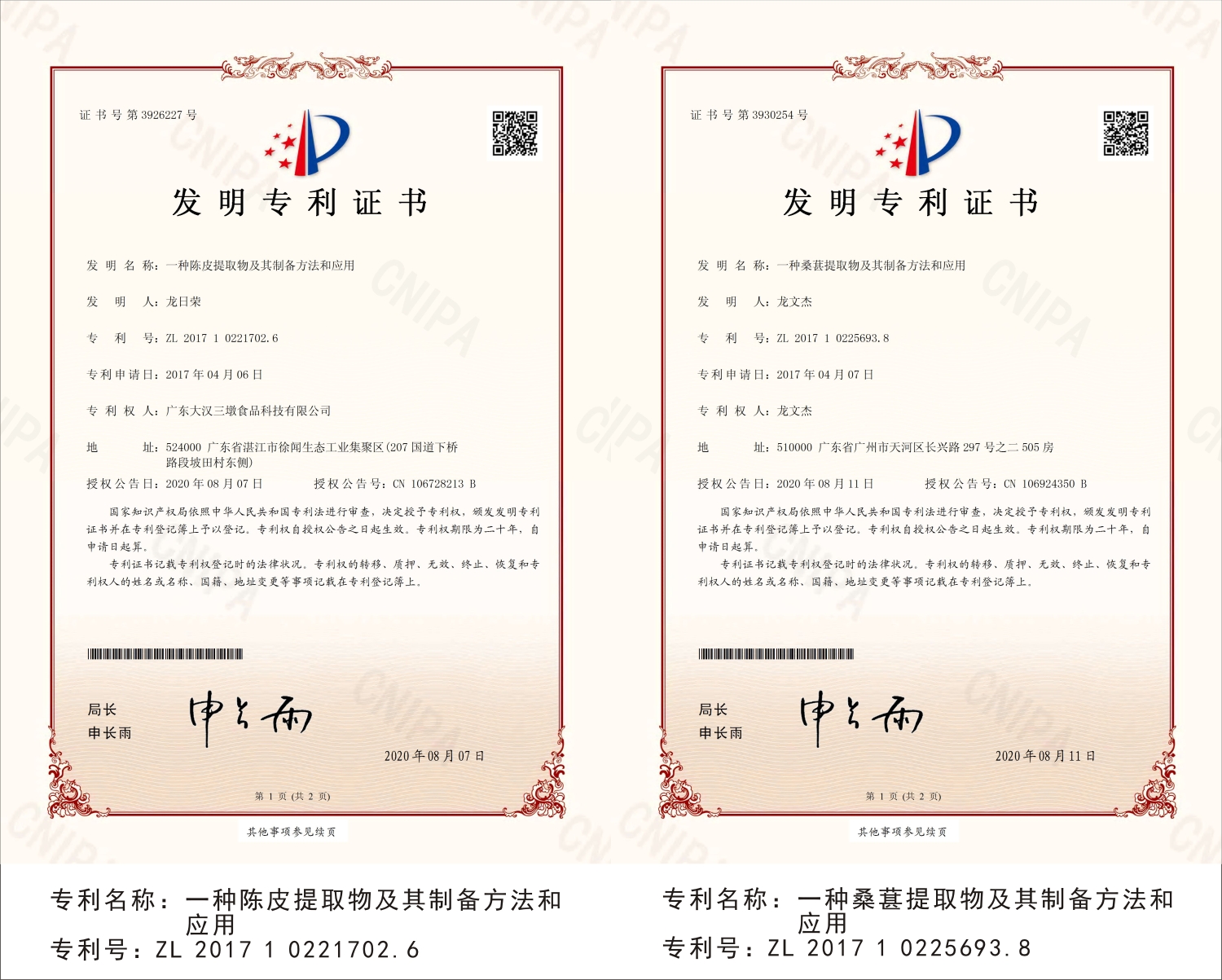 广东神农氏健康科技有限公司专利证书展示